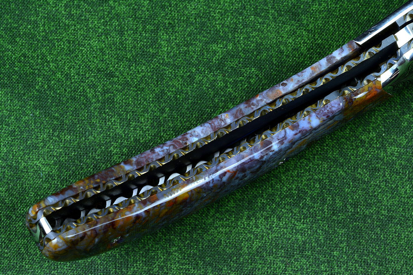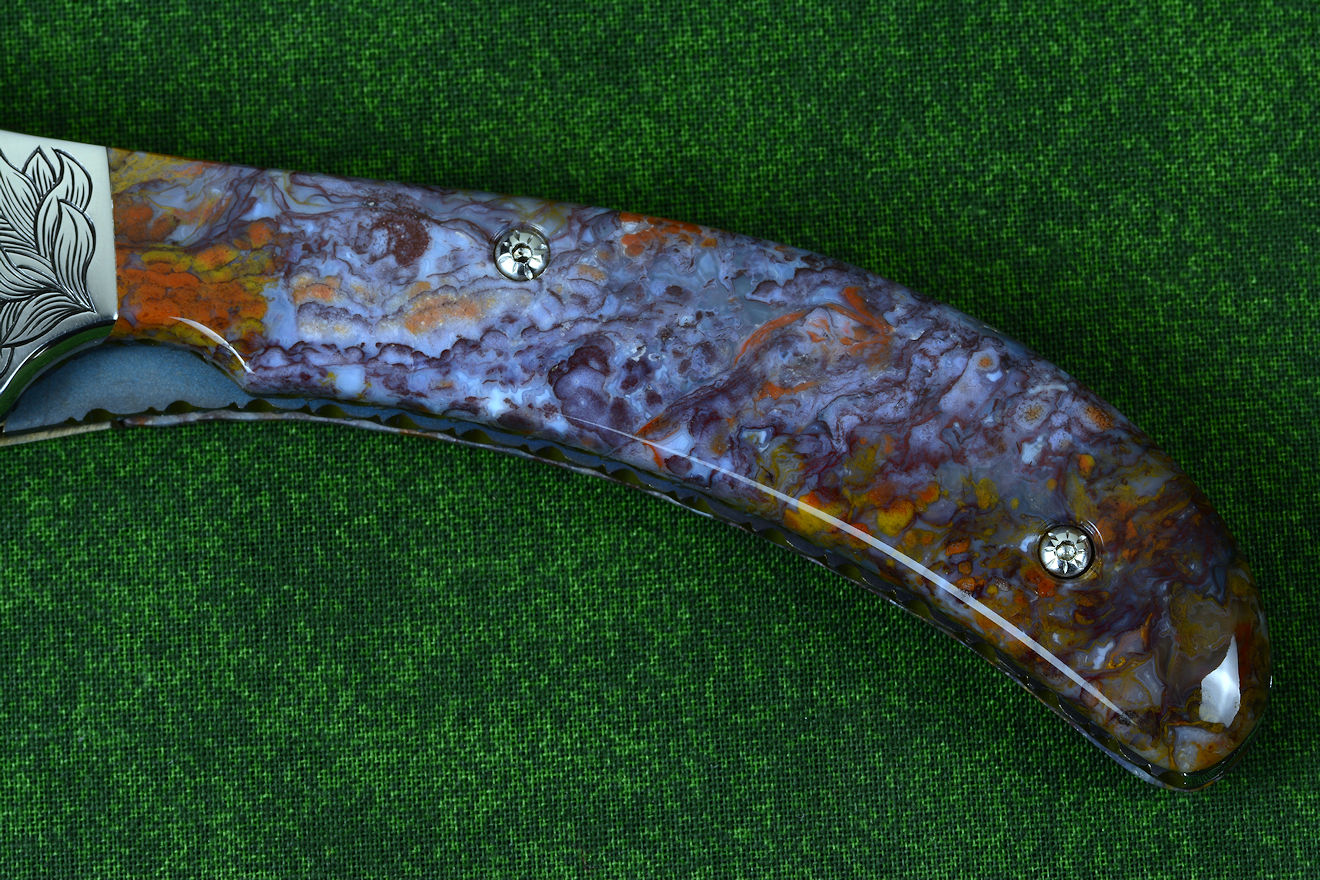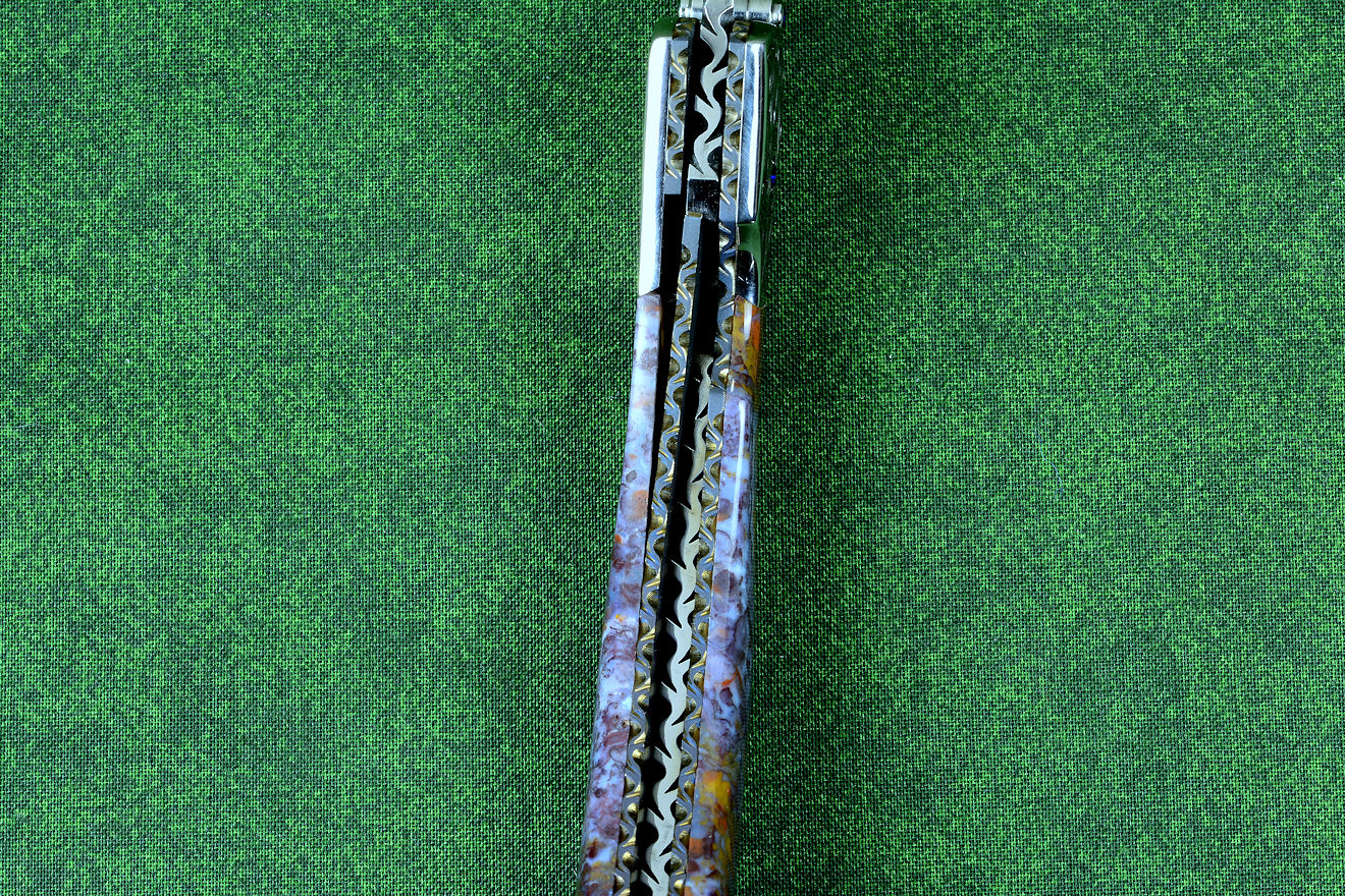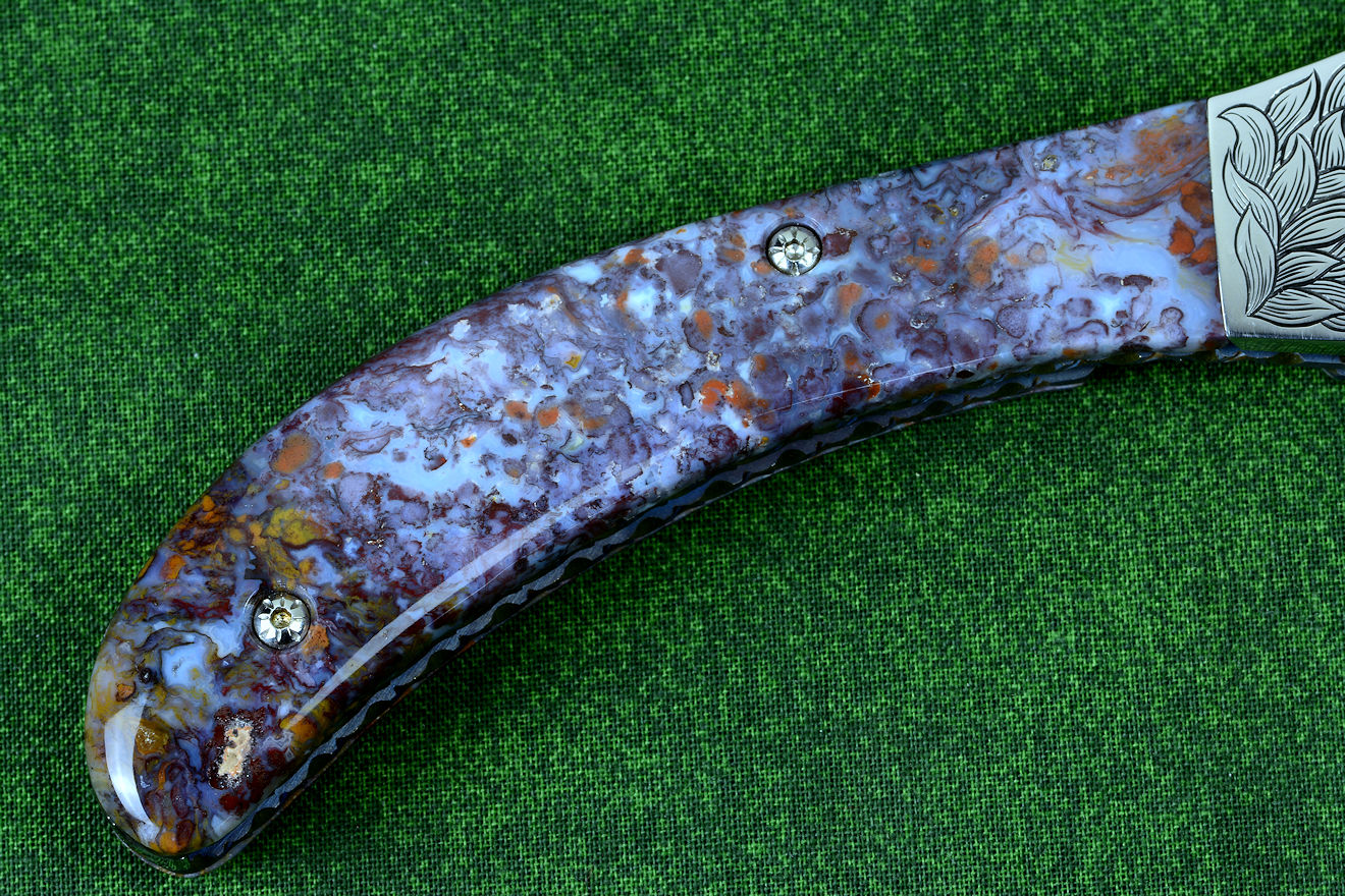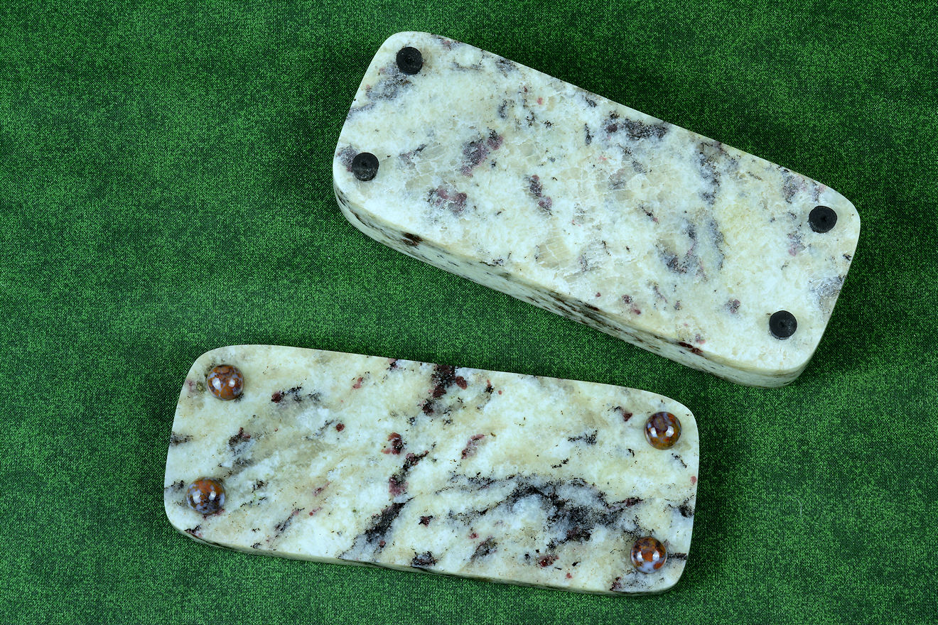 - In nature's most eternal and durable material, stone, the handle scales of this knife are