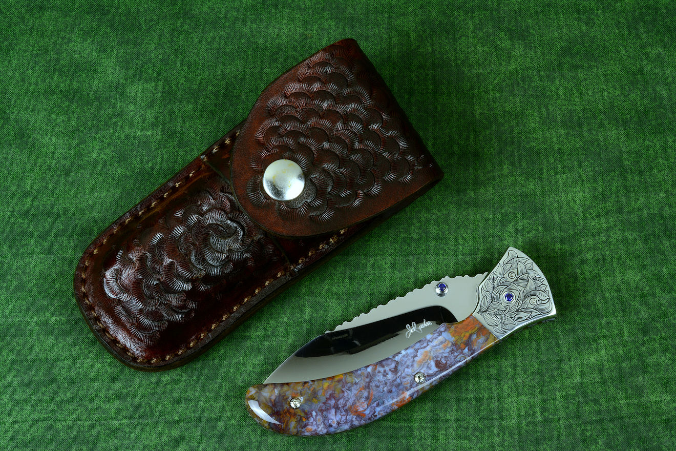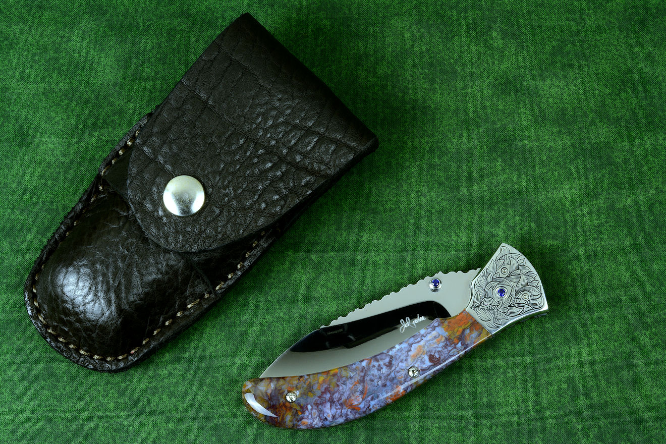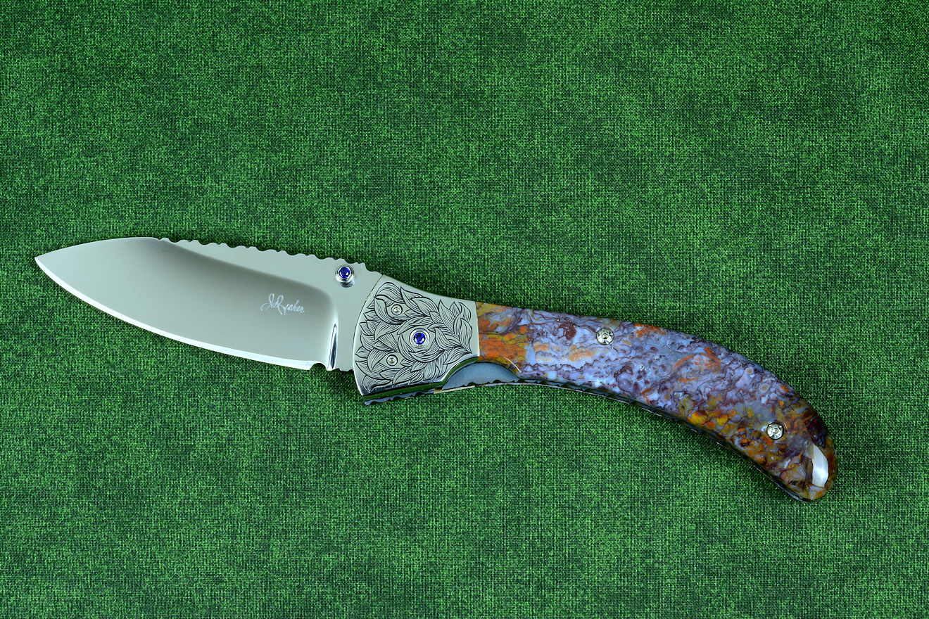 faceted blue amethyst gemstones. I put thumb studs on both sides of the blade